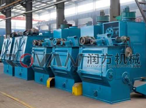 輥道通過式拋丸機:是清理結構件、H型鋼、鋼板及其它類型鋼材的多功能拋丸清理設備,有平輥道和V型輥道兩種。它能夠對處于原始狀態的鋼材表面施以強烈拋丸,清除其銹斑和焊渣及氧化層。使之獲得一定光潔度均勻一致的金屬光澤表面,以便去除應力,提高鋼結構及鋼材表面涂飾質量與防腐蝕性能。本機適用于鋼板、型鋼、鋼管、金屬結構焊件、鋼制品、鐵路車輛、工程機械、橋梁制造業等的去應力及表面除銹。是應用廣泛的一種拋丸機。