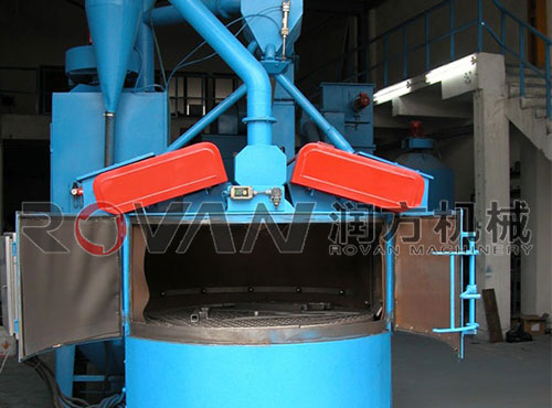 轉臺式拋丸機:適用于扁平的怕碰撞的工件清理,工件平放在轉臺上,彈丸垂直拋到工件表面,達到拋丸強化的目的。轉臺式拋丸機為通用設備,主要型號有Q3510轉臺式拋丸機、Q3512轉臺式拋丸機、Q3515轉臺式拋丸機等。