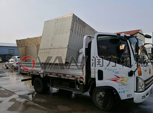 1號下午,公司定做的木箱到位,隨即將路面拋丸機、除塵器等配套設備裝箱封箱,貨車發往海關發貨。