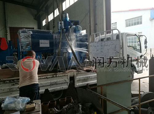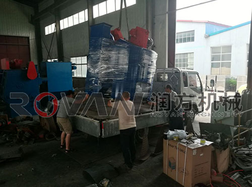 2017年7月6號,英國客戶從我公司采購的轉臺式拋丸機調試完畢,使用兩輛貨車發往青島港,一臺運輸拋丸機主機,一臺運輸配套除塵器及其他配件。
