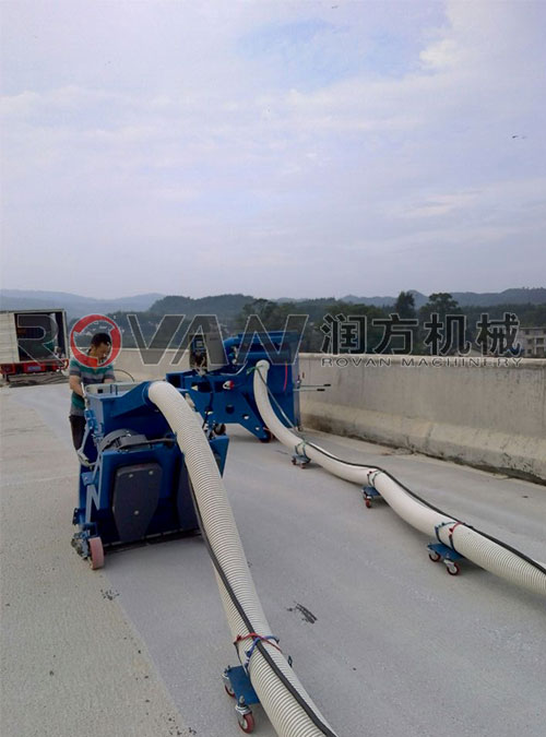 銅萬高速公路起于銅鼓縣,止于萬載縣,途經銅鼓縣、宜豐縣、萬載縣,全長69.134公里,于2015年1月開工建設,2016年7月在放溪鎮路段對橋梁道路表面開始清理,并且采用潤方機械橋梁拋丸機,上面是施工時拍攝的照片,從圖片上我們可以看出,拋丸機在橋梁表面的清理效果十分明顯,而且單人就可以使用操作,十分便捷。
