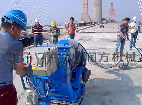 2016年9月份開始,我公司施工隊伍在福建夏漳高速上對高架橋面進行施工,施工人員采用兩臺路面拋丸機ROPW-850對橋體表面覆蓋性作業,主要針對橋面的浮漿進行清理。