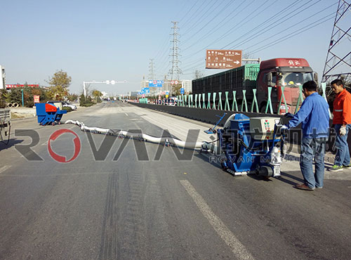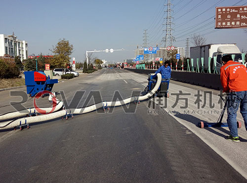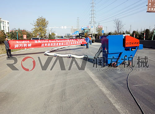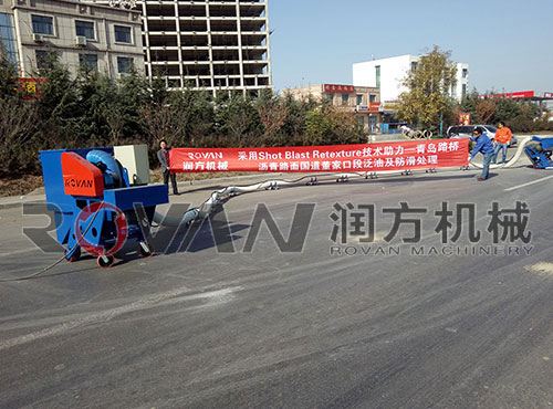 位于青島市黃島區的董家口港路段道路正在使用路面拋丸機對其進行清理,由于董家口多為重工業,貨車出入過多,對混凝土的負荷較大,并且道路瀝青積累過多,使用路面拋丸機進行清理,可以使表面完全起砂,去除浮漿,表面粗糙均勻。