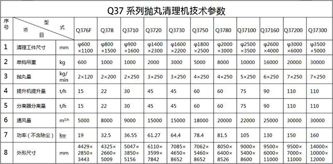Q37系列拋丸清理機(jī)技術(shù)參數(shù):