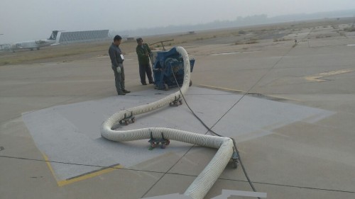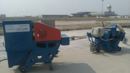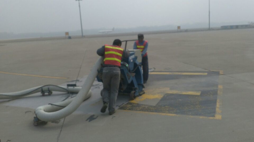 2015年4月3日,在濟南遙墻機場進行施工,主要是采用路面拋丸機對地坪上的標志線跟地坪上的污垢進行清理。在圖片上可以看到明顯的清除效果,潤方機械路面拋丸機主要適用于地坪表面、涂裝行業、混凝土浮漿的清理和對各種表面打毛,是大型清理作業的理想選擇。
